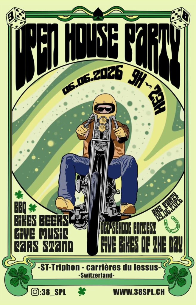 Sans affiliation aucune, notre Team s’étoffe en personnages et en choppers de même sang. L’odeur du métal chauffé à la meule, de l’huile brûlante, de l’air des campagnes, du tabac et les sonorités qui vont avec, nous enivrent et nous poussent de plus en plus dans les fondements de la Kustom Kulture. Le tout saupoudré d’un zeste de Rock & Roll savamment dosé.